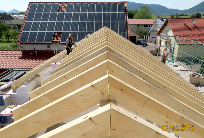 zimmermannsmäßig erstellten Dachstuhl, achten wir auf detailgenaue Ausführung und auf eine langlebige Konstruktion. Mit einer speziellen Wandkonstruktion und der modernsten Haustechnik (kontrollierte Be- und Entlüftung,