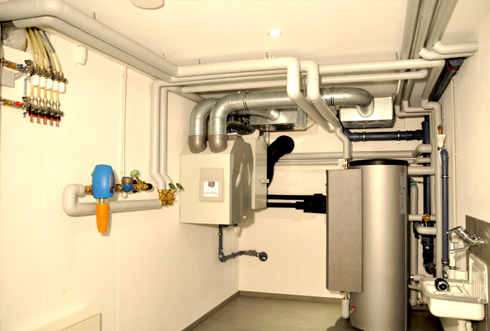 Wir verbauen ausschließlich moderne ausgereifte Technik: Kontrollierte Be- u. Entlüftung, passive Kühlung, Bussteuerung, Alarmanlage, Beschattung, Solartechnik und Wärmepumpentechnik.